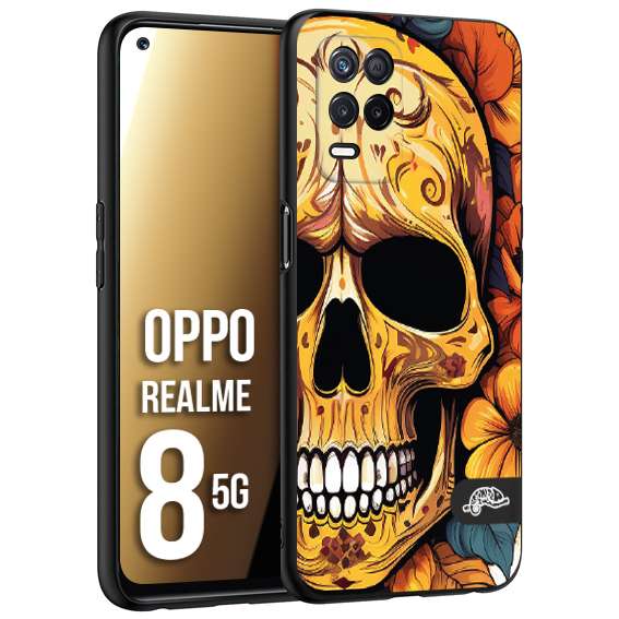 CUSTOMIZZA - Custodia cover nera morbida in tpu compatibile per Oppo Realme 8 5G teschio messicano colorato dorato fiori autunnali disegnato