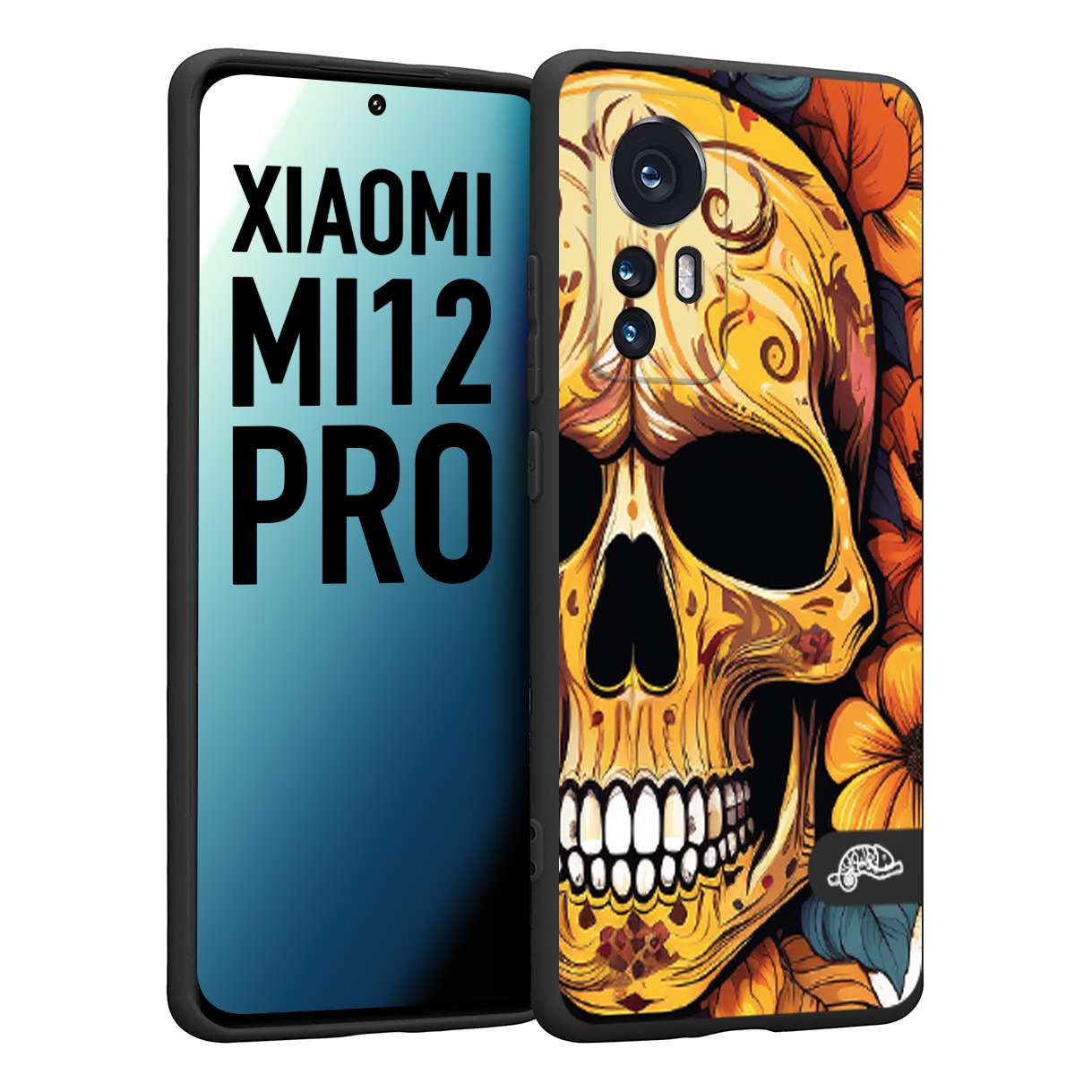 CUSTOMIZZA - Custodia cover nera morbida in tpu compatibile per Xiaomi 12 PRO teschio messicano colorato dorato fiori autunnali disegnato