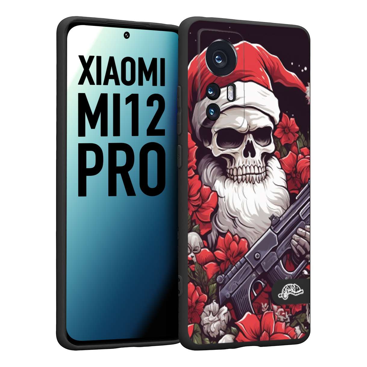 CUSTOMIZZA - Custodia cover nera morbida in tpu compatibile per Xiaomi 12 PRO teschio natale santa claus fiori tattoo disegnato
