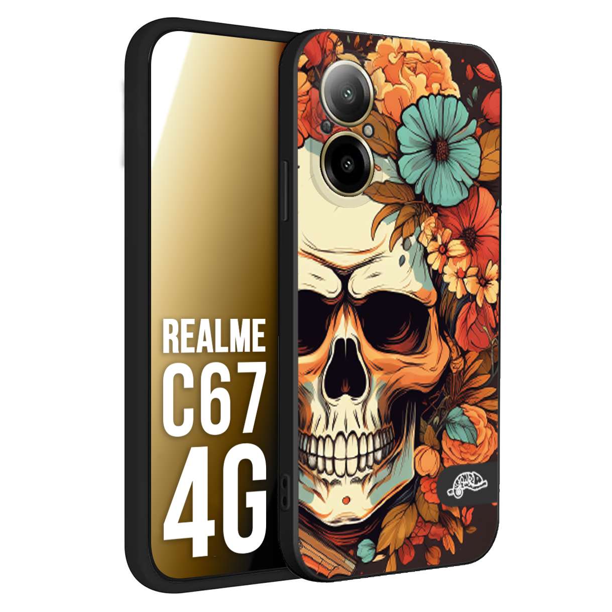 CUSTOMIZZA - Custodia cover nera morbida in tpu compatibile per Oppo C67 4G teschio skull flowers fiori autunnali arancio celeste tattoo