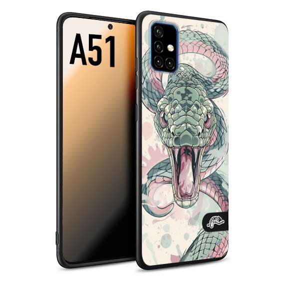 CUSTOMIZZA - Custodia cover nera morbida in tpu compatibile per Samsung A51 snake pink green serpente tatuaggio tattoo disegnato a mano
