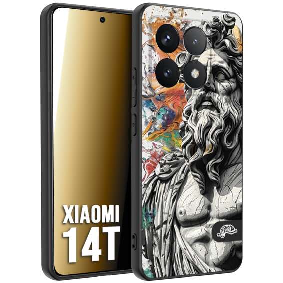 CUSTOMIZZA - Custodia cover nera morbida in tpu compatibile per Xiaomi 14T statua colorata moderna antico tattoo splash color