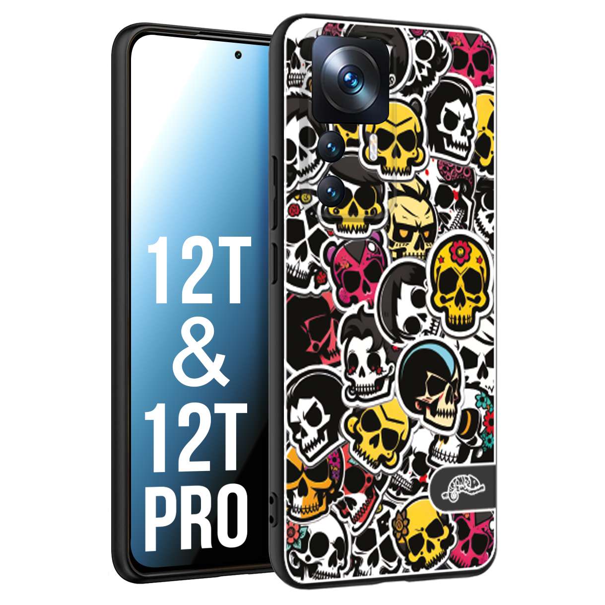 CUSTOMIZZA - Custodia cover nera morbida in tpu compatibile per Xiaomi 12T - 12T PRO sticker bomb teschi colorati adesivi skulls skater snowboard