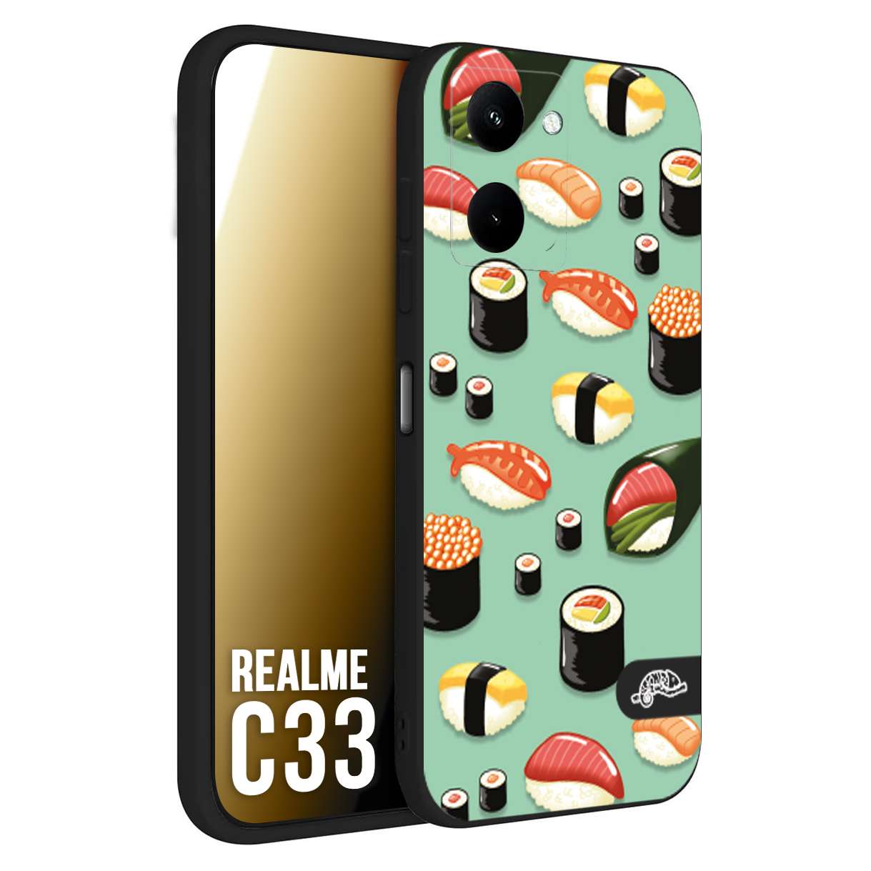 CUSTOMIZZA - Custodia cover nera morbida in tpu compatibile per Oppo Realme C33 sushi disegni giapponese nighiri acquamarina verde