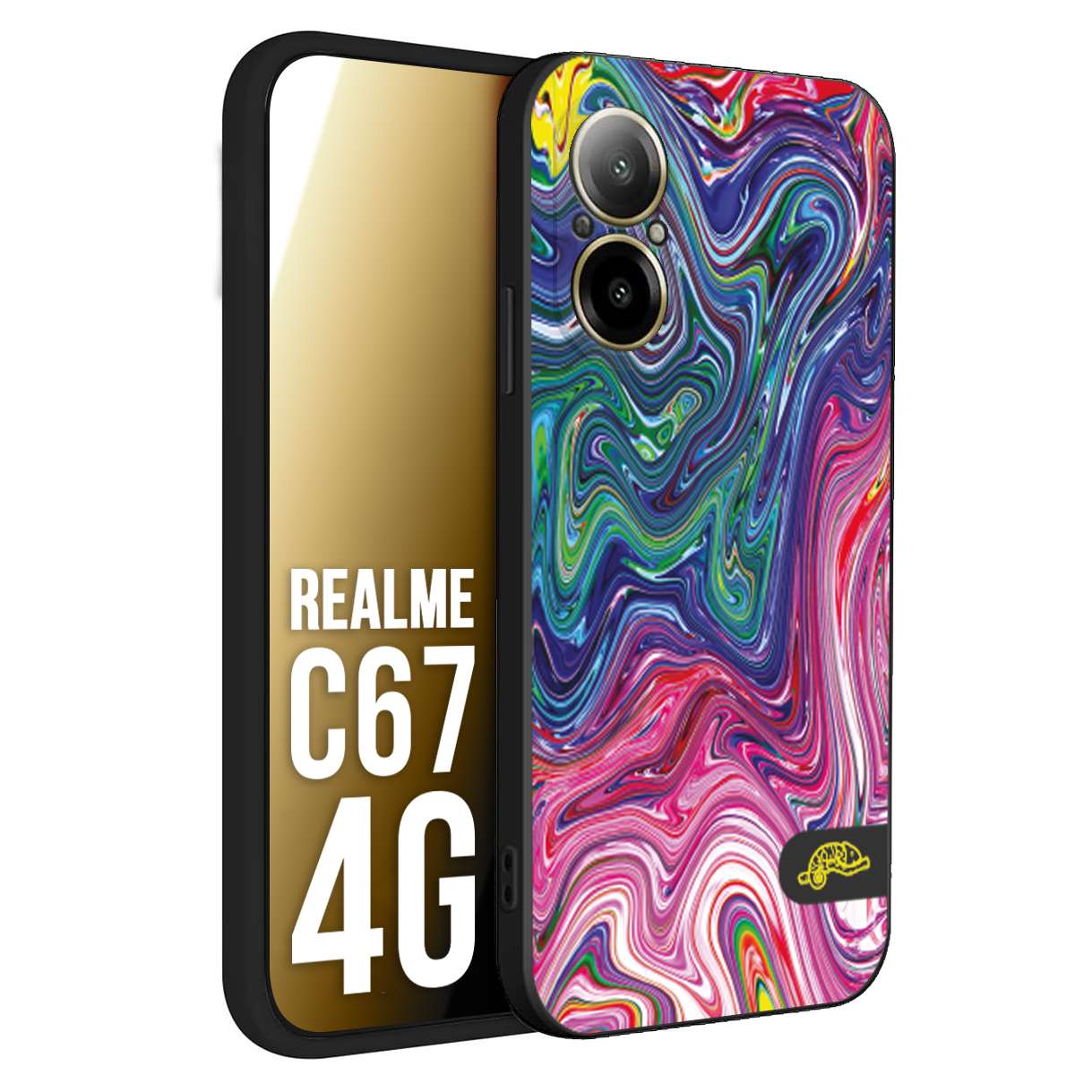 CUSTOMIZZA - Custodia cover nera morbida in tpu compatibile per Oppo C67 4G colorata fantasia vortice marmo arcobaleno rosa blu fucsia