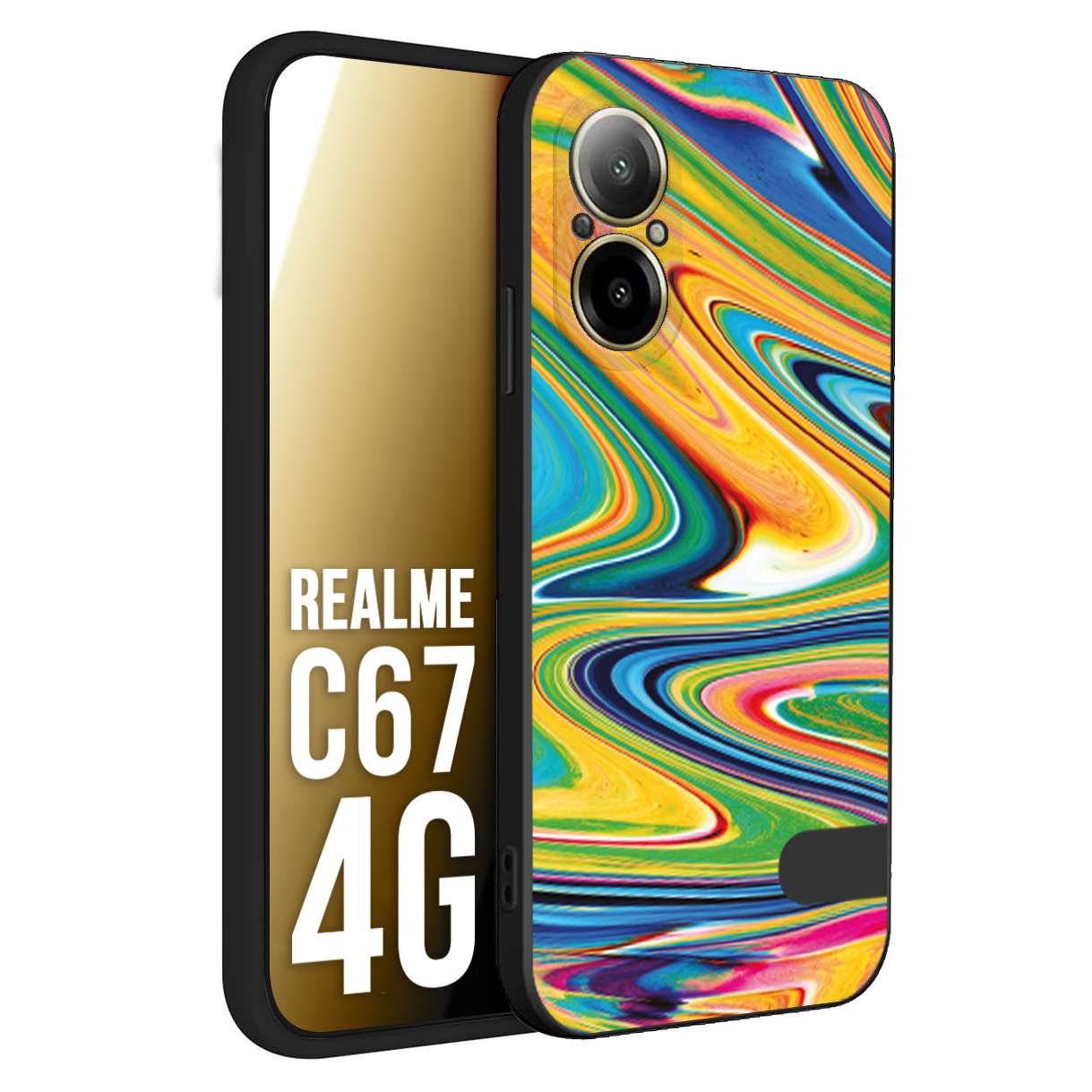CUSTOMIZZA - Custodia cover nera morbida in tpu compatibile per Oppo C67 4G colorata fantasia vortice marmo arcobaleno gialla verde blu