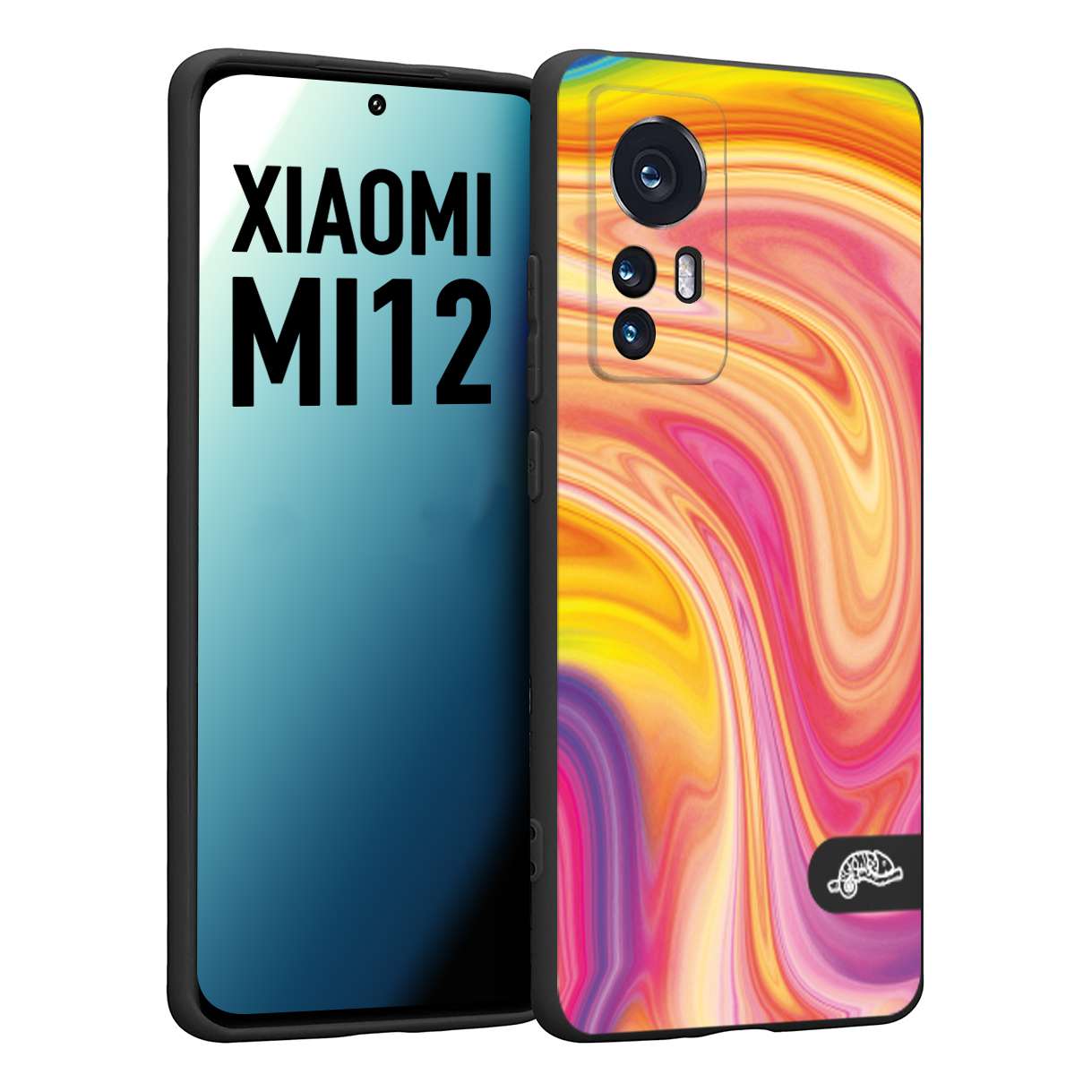 CUSTOMIZZA - Custodia cover nera morbida in tpu compatibile per Xiaomi 12 5G colorata fantasia vortice marmo onde rosa fucsia gialla