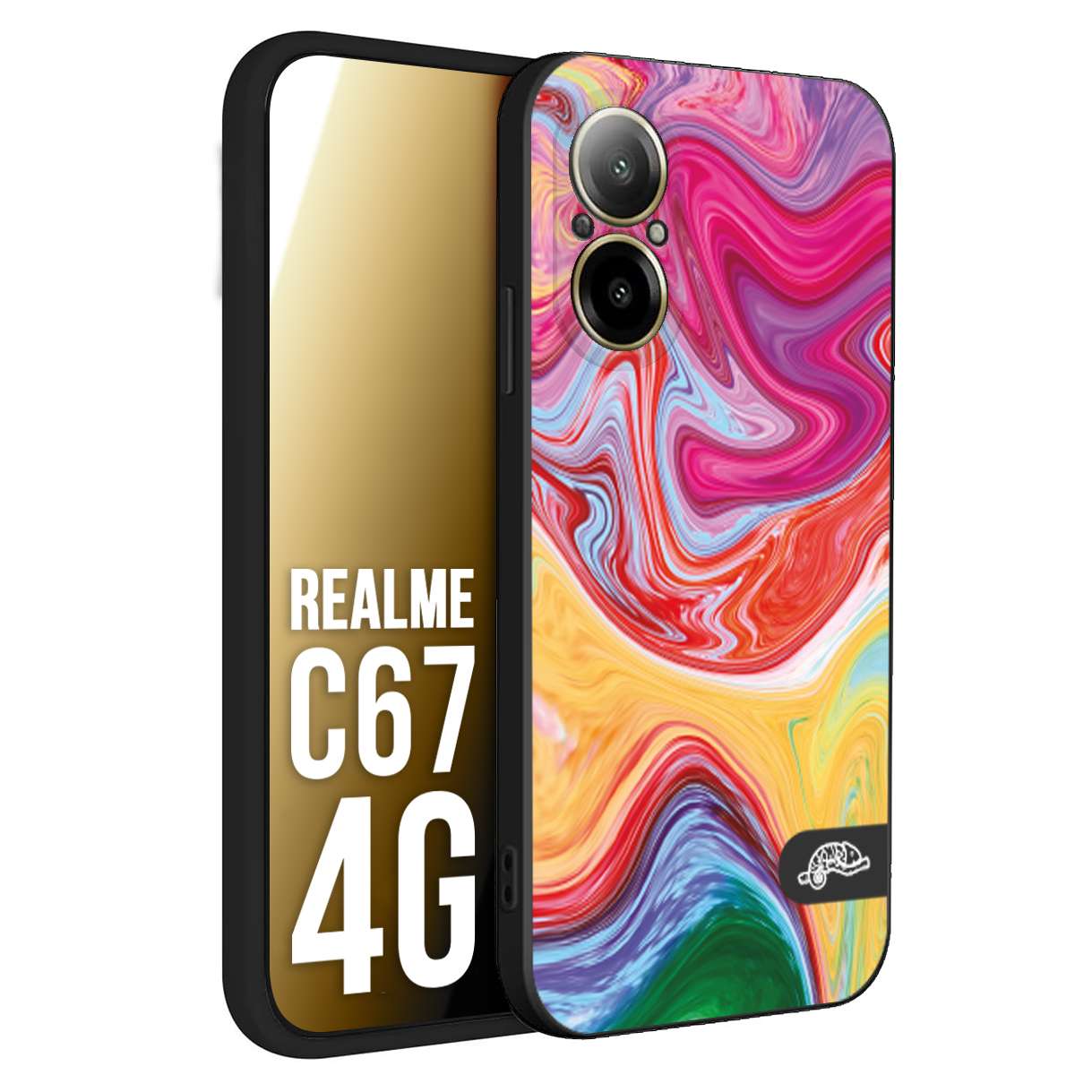 CUSTOMIZZA - Custodia cover nera morbida in tpu compatibile per Oppo C67 4G colorata fantasia vortice marmo onde verde fucsia gialla