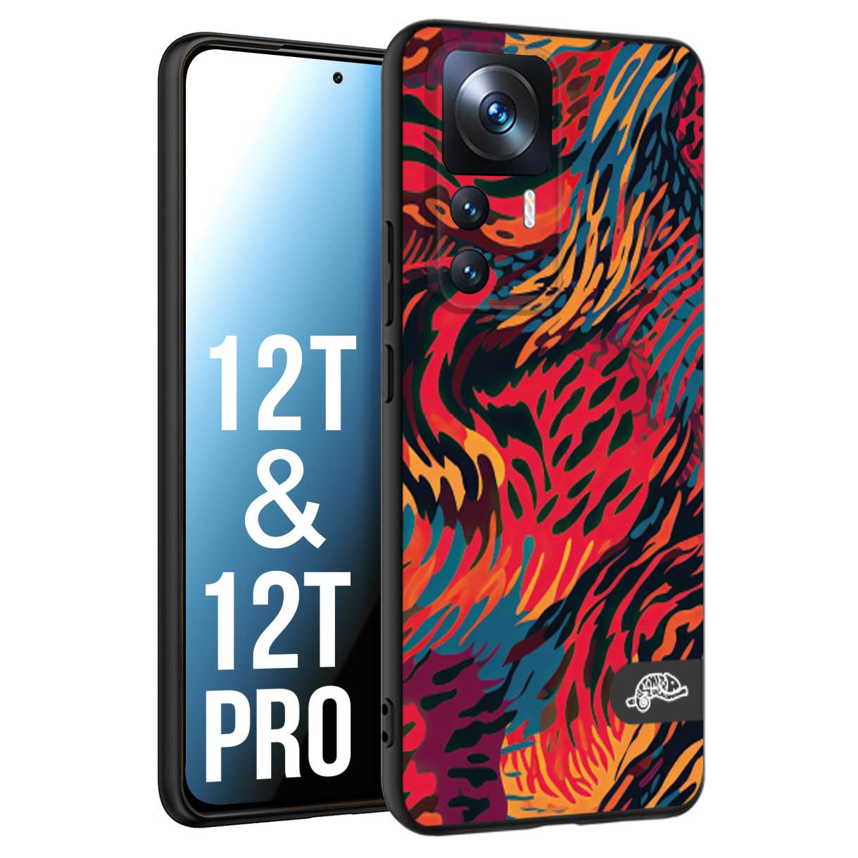 CUSTOMIZZA - Custodia cover nera morbida in tpu compatibile per Xiaomi 12T - 12T PRO leopardato maculato tigrato colorata fiamme rossa blu arancione