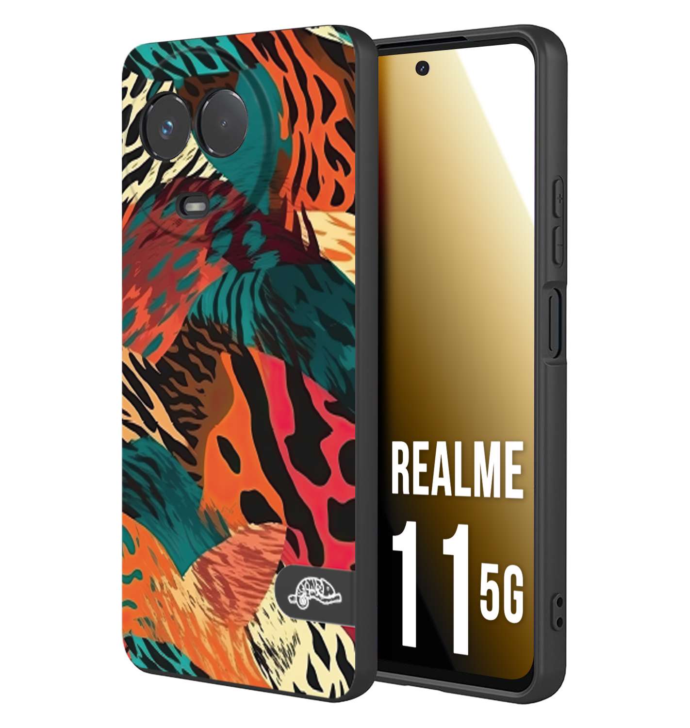 CUSTOMIZZA - Custodia cover nera morbida in tpu compatibile per Oppo Realme 11 5G leopardato tigrato tiger colorata summer arancio verde fucsia