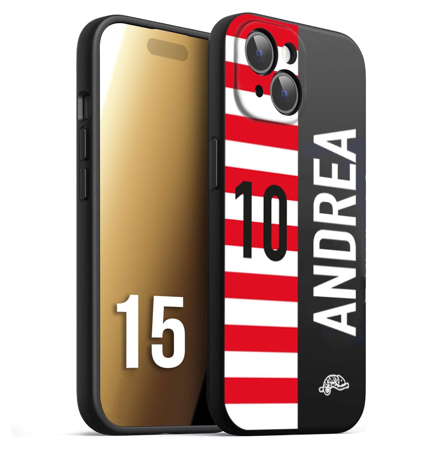 CUSTOMIZZA - Custodia cover nera morbida in tpu compatibile per iPhone 15 personalizzata calcio football nome e numero calciatori bianco rossa