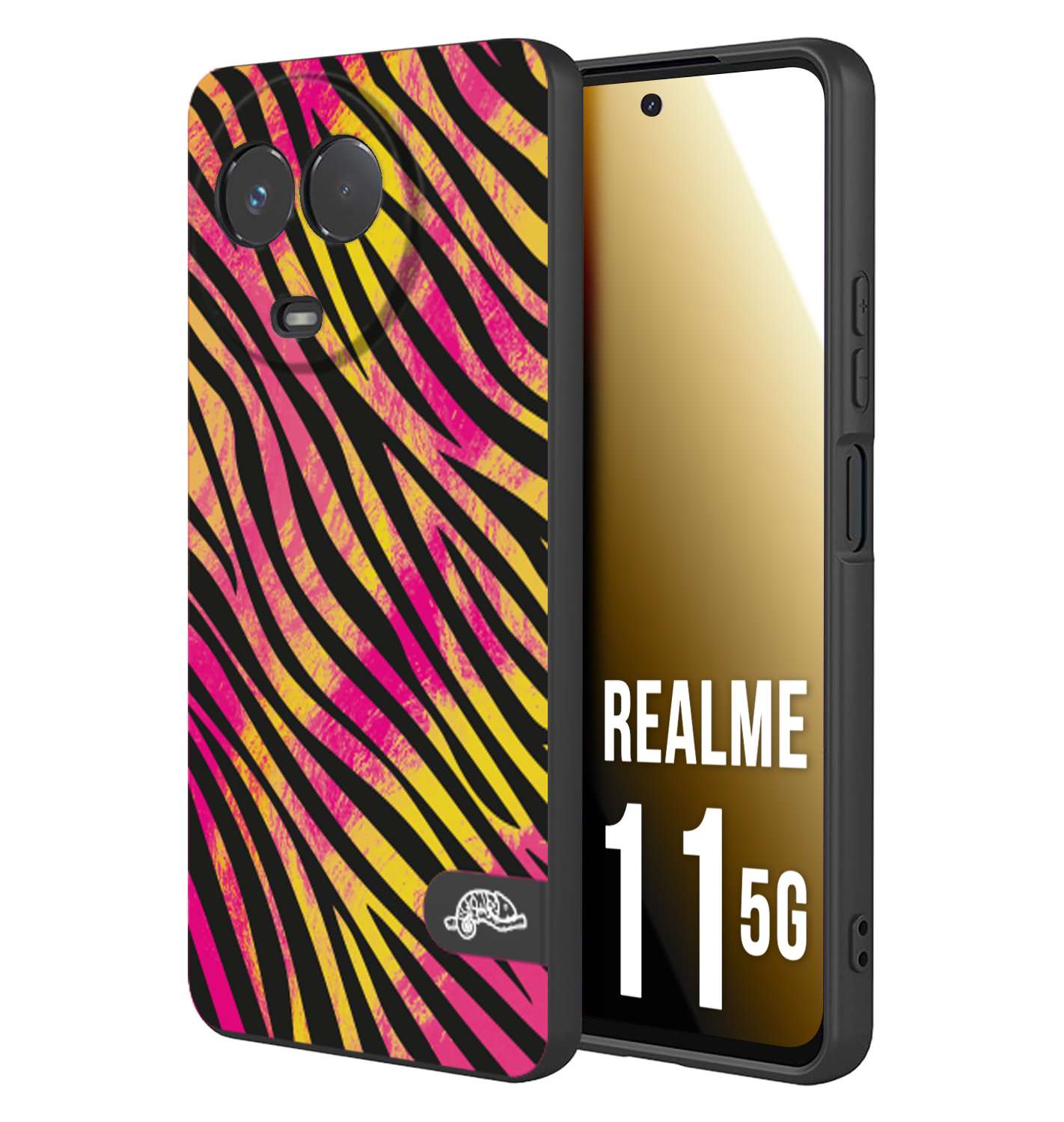 CUSTOMIZZA - Custodia cover nera morbida in tpu compatibile per Oppo Realme 11 5G zebrata maculata a rilievo soft touch donna fucsia gialla