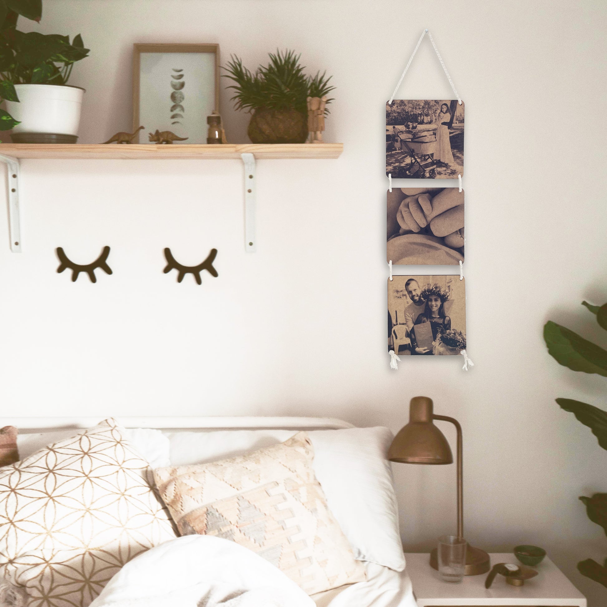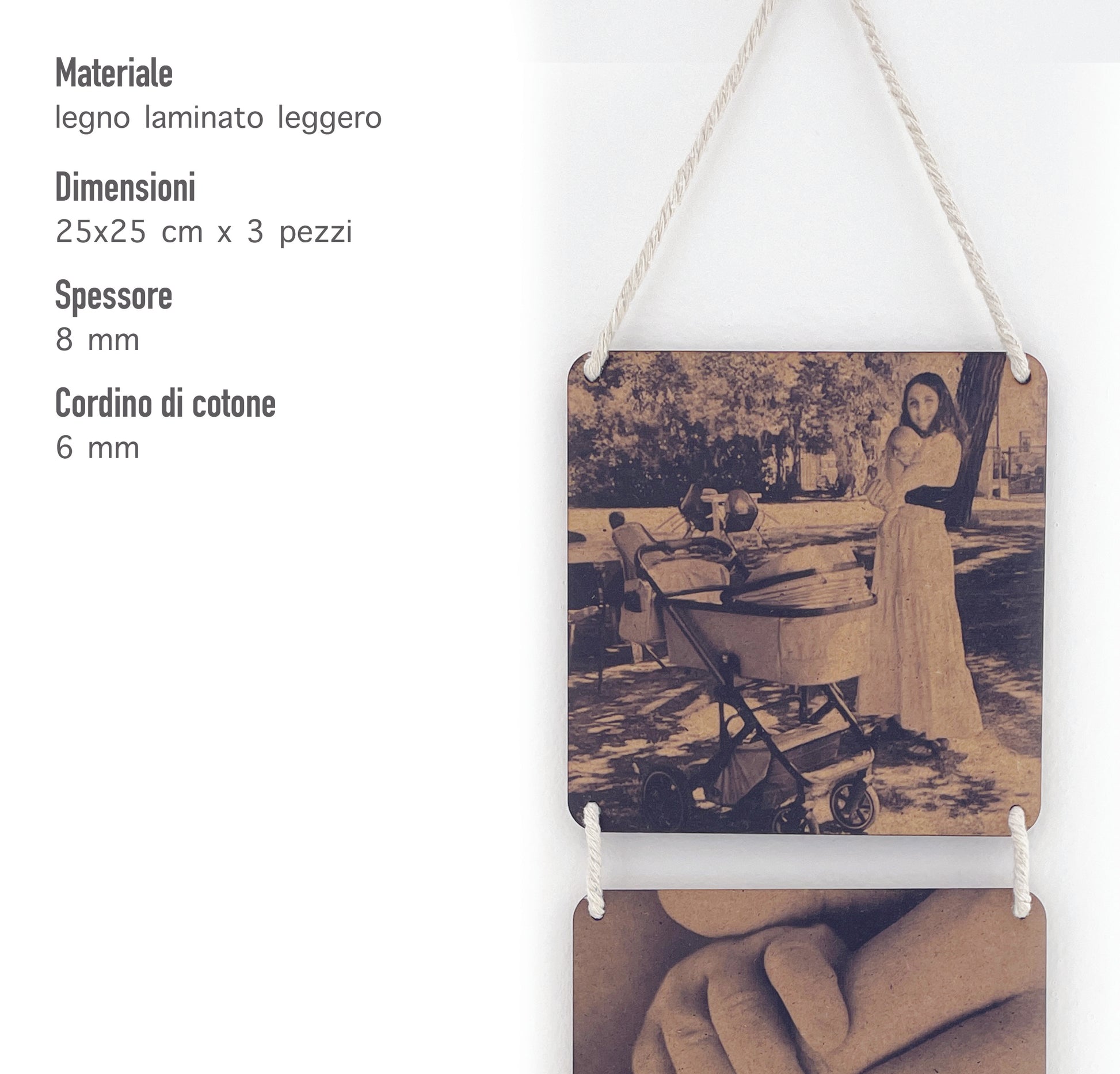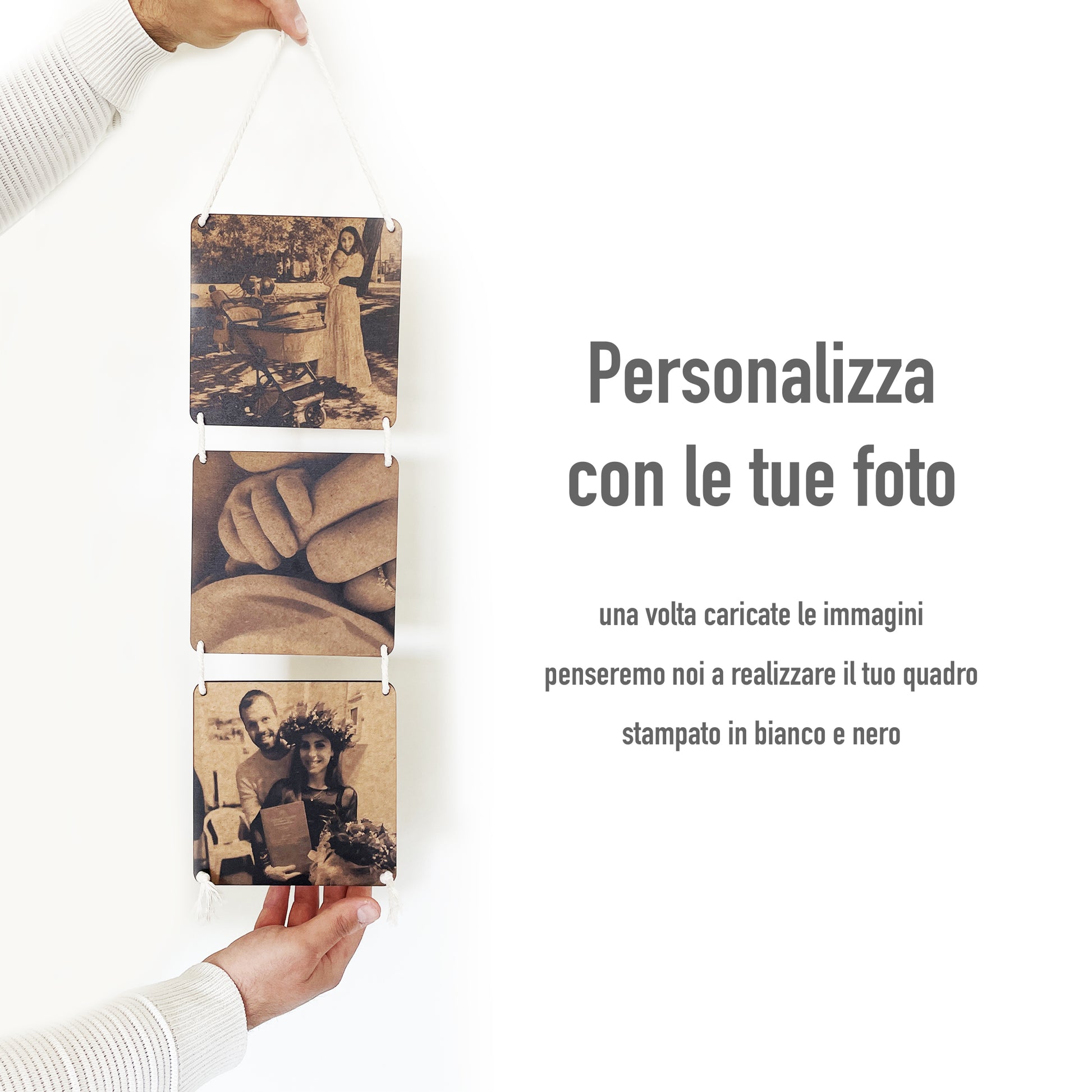Idea Regalo San Valentino quadro in legno Personalizzato con la tua Foto con cordino in cotone da 0,6 mm (Tris Quadrato)