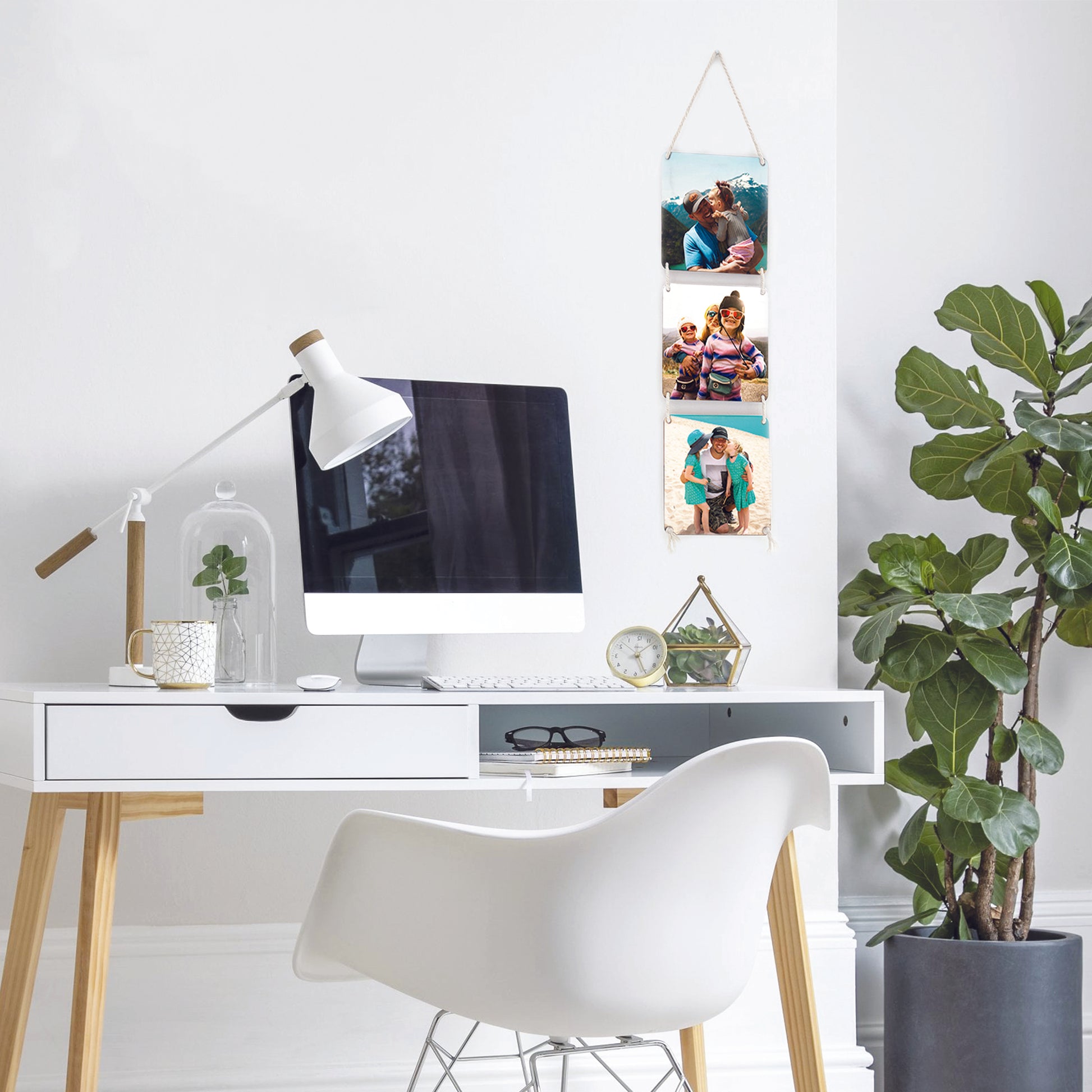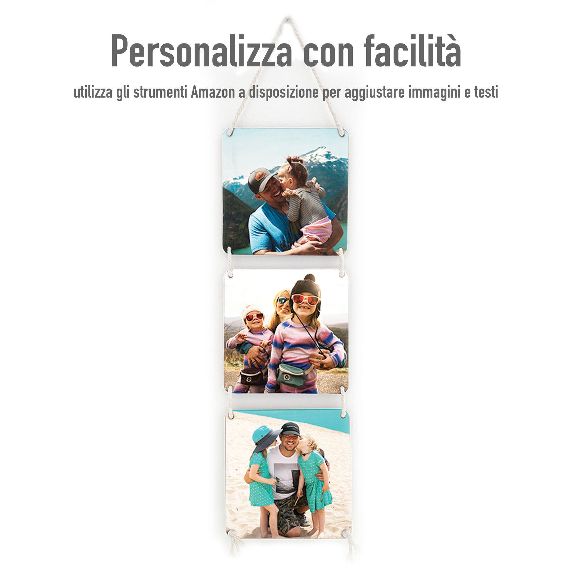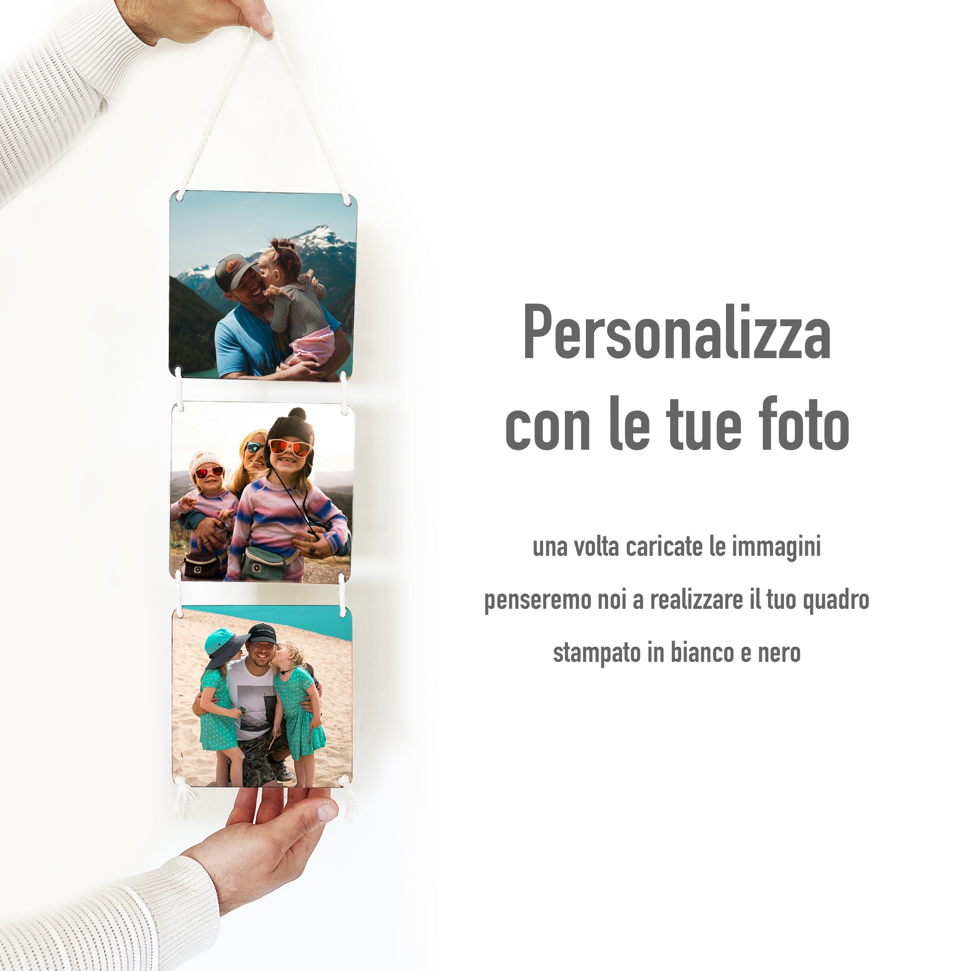 Idea Regalo San Valentino quadro in legno Personalizzato con la tua Foto con cordino in cotone da 0,6 mm (Tris Quadrato Colori)