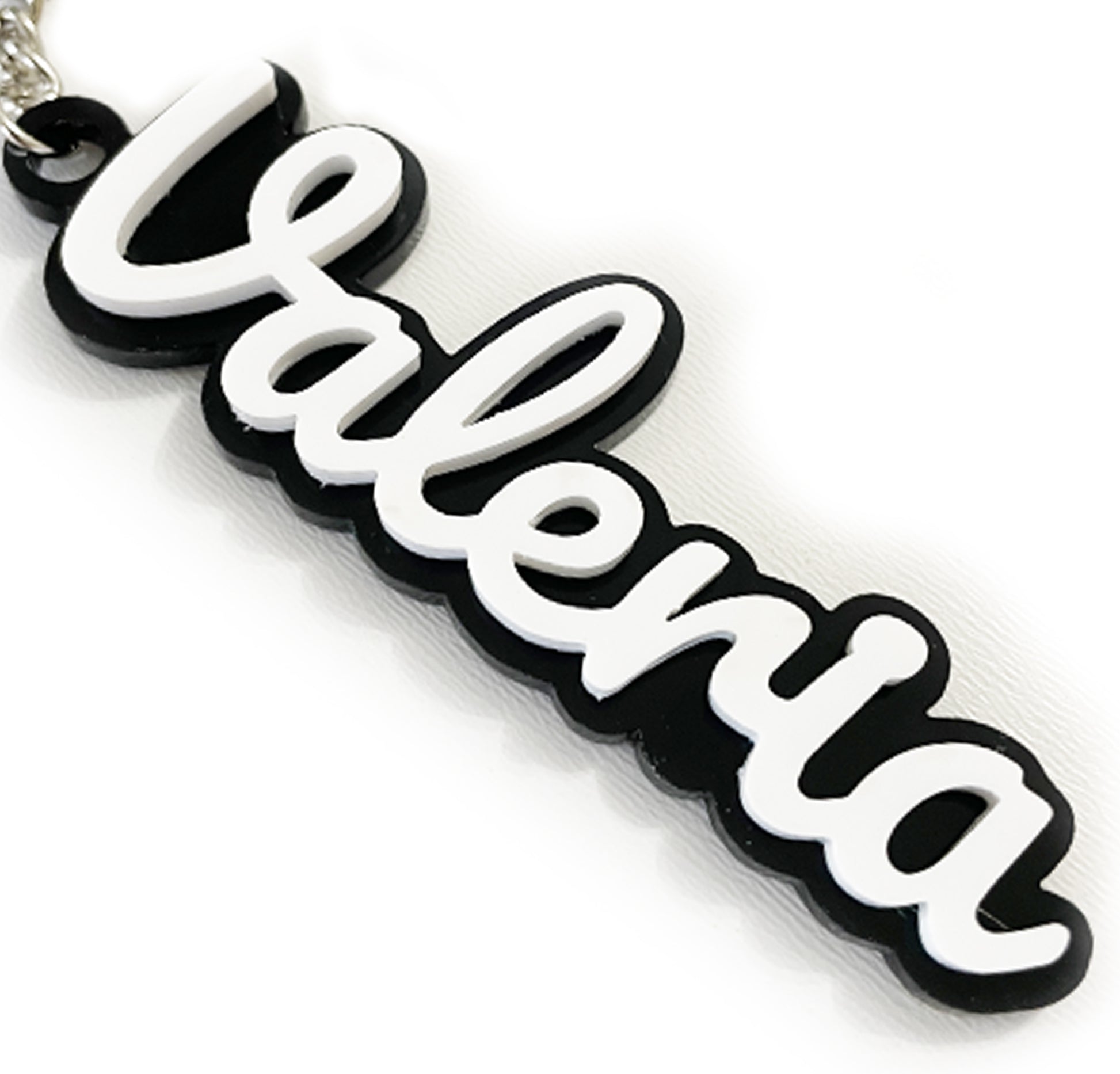 Portachiavi in plexiglass personalizzato con nome dedica a rilievo 3d corsivo idea regalo casa auto moto scooter